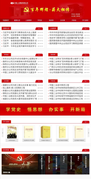 5月4日,公司黨群工作部特別策劃的“百年輝煌·薪火相傳”專題網(wǎng)頁(yè)正式上線,為深入學(xué)習(xí)宣傳貫徹習(xí)近平新時(shí)代中國(guó)特色社會(huì)主義思想,全面貫徹落實(shí)中國(guó)五礦、中冶集團(tuán)黨史學(xué)習(xí)教育動(dòng)員部署會(huì)相關(guān)要求,號(hào)召全體黨員干部學(xué)黨史、悟思想、辦實(shí)事、開(kāi)新局,不斷增強(qiáng)抓好學(xué)習(xí)教育的思想自覺(jué)、政治自覺(jué)和行動(dòng)自覺(jué),高標(biāo)準(zhǔn)高質(zhì)量完成學(xué)習(xí)教育各項(xiàng)任務(wù)增開(kāi)了新渠道。專題網(wǎng)站下設(shè)9個(gè)欄目,分別是“重要論述”“上級(jí)精神”“學(xué)黨史”“悟思想”“辦實(shí)事”“開(kāi)新局”“黨史書(shū)架”“百年輝煌·影像”“百年輝煌·百花齊放”欄目。專題網(wǎng)站旨在打造思想引領(lǐng)、政策解讀、信息傳遞、成果展示、經(jīng)驗(yàn)分享等為一體的黨史學(xué)習(xí)教育網(wǎng)上信息平臺(tái),引導(dǎo)公司廣大黨員干部將思想和行動(dòng)統(tǒng)一到中國(guó)二冶黨委部署上來(lái),切實(shí)做到學(xué)史明理、學(xué)史增信、學(xué)史崇德、學(xué)史力行,一步一個(gè)腳印扎實(shí)推動(dòng)公司各項(xiàng)事業(yè)向前發(fā)展,以優(yōu)異成績(jī)迎接建黨100周年!