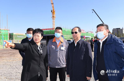 石泰峰走進(jìn)大地熊建設(shè)工地施工現(xiàn)場,映入眼簾的就是如火如荼的建設(shè)場景,一棟棟廠房拔地而起,象征著包頭的經(jīng)濟(jì)也將迎來騰飛。